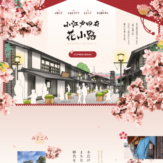 甲府市のまちづくり戦略「小江戸甲府 城下町整備プラン」の一環として整備された「花小路」の公式サイト制作を担当しました。本サイトは、施設完成前に公開していたティザーサイトから役割を引き継ぎつつ、来場を検討する一般のお客様に向けたプロモーションを目的としたサイトとして設計しています。