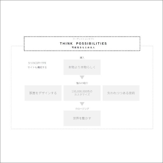 コピーを軸にサイト全体を組み立てることで、技術や実績を並べるだけでは伝わりにくい、思想や姿勢を自然な流れの中で理解できる組み立てに。それぞれの言葉には「強いストーリー」を持たせています。