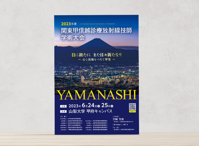 山梨大学を会場に開催された「2023年度関東甲信越診療放射線技師学術大会」PR用リーフレット・ポスター・クリアファイル一式をおつくりいたしました。先行して制作を行ったリーフレットのデザインをもとにWebサイトを展開しています。