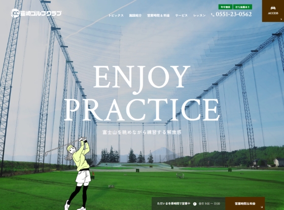 韮崎市にあるゴルフ練習場「韮崎ゴルフクラブ」様のサイトリニューアルを担当いたしました。このサイトでは、練習場の特徴である開放感や立地の魅力を前面に打ち出し、「ここで打ってみたい」と思える第一印象の形成を重視しました。